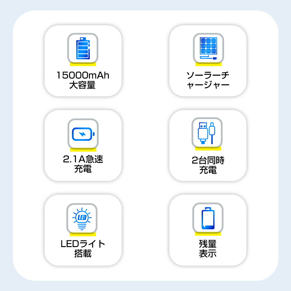 商品名 : [30%OFFクーポン配布中★新生活応援セール] モバイルバッテリー ソーラー 15000mAh 大容量 急速充電 ソーラー充電器 モバイルバッテリー ソーラーチャージャー 高輝度 LEDライト 防水 防塵 耐衝撃 携帯充電器 旅行 SOS 出張 緊急用 地震 台風 防災グッズ 対象D