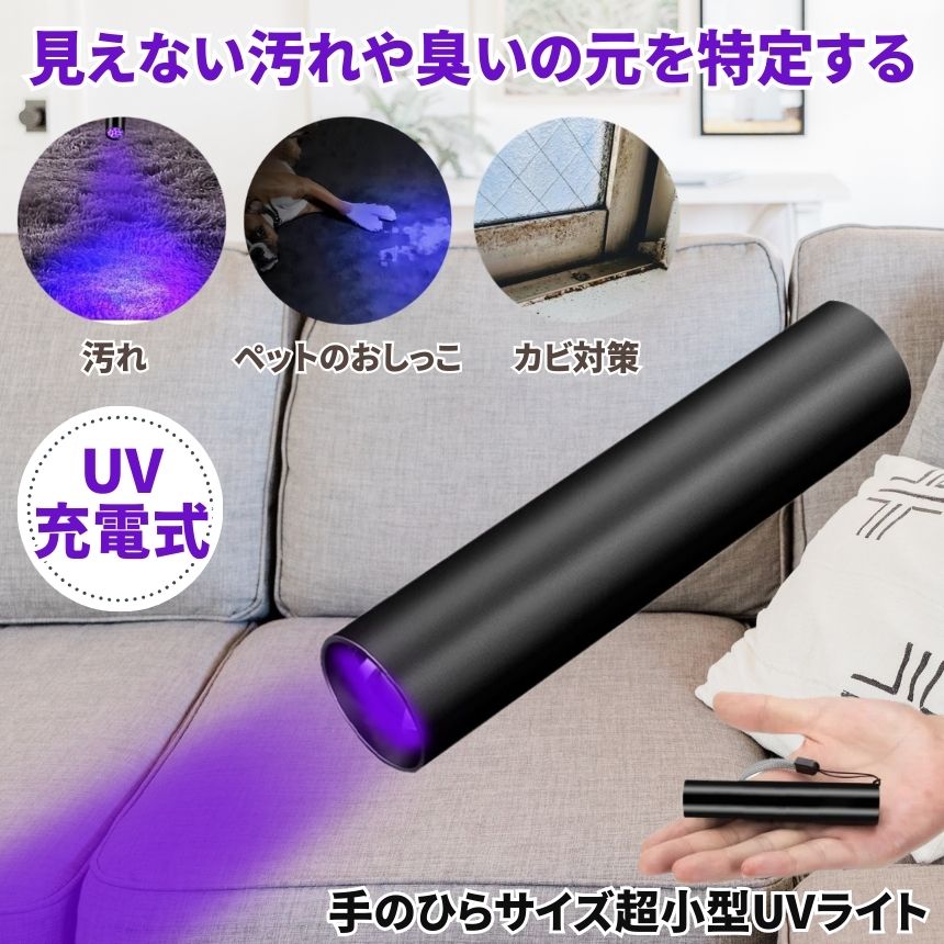 商品名 : 懐中電灯 ブラックライト ハンディライト led ライト UV 紫外線 充電式 最強 ハンディ高輝度 USB充電式 ハンドライト 小型 軽量 おしっこ 蓄光 疑似餌 プラモデル 蛍光 塗料 カビ 防止 夜釣り 釣り ルアー アニサキス 緊急 防災