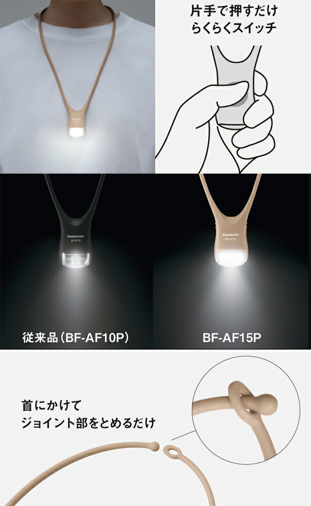 商品名 : Panasonic LEDネックライト BF-AF15P 従来品よりさらに明るい両手が自由に使えるハンズフリーライト 新色!普段のファッションになじみやすいカラー展開 [02P05Nov16]
