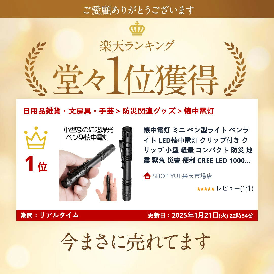 商品名 : 懐中電灯 ミニ ペン型ライト ペンライト LED懐中電灯 クリップ付き クリップ 小型 軽量 コンパクト 防災 地震 緊急 災害 便利 CREE LED 100000時間寿命 1200ルーメン 明るい 電池式 防水 ペンクリップ 送料無料 MINILIGHT