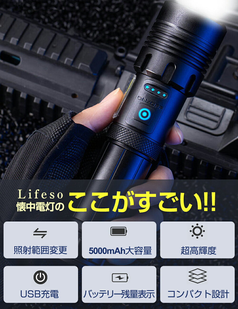 商品名 : 懐中電灯 強力 LED ハンディライト 軍用 ハンディライト Type-C 充電式 XHP700 高輝度 明るい 小さい IPX6防水 18650 電池付属 爆光ライト COB 作業電灯 ランタン 多機能 防災 災害 屋外 停電対策 おすすめ