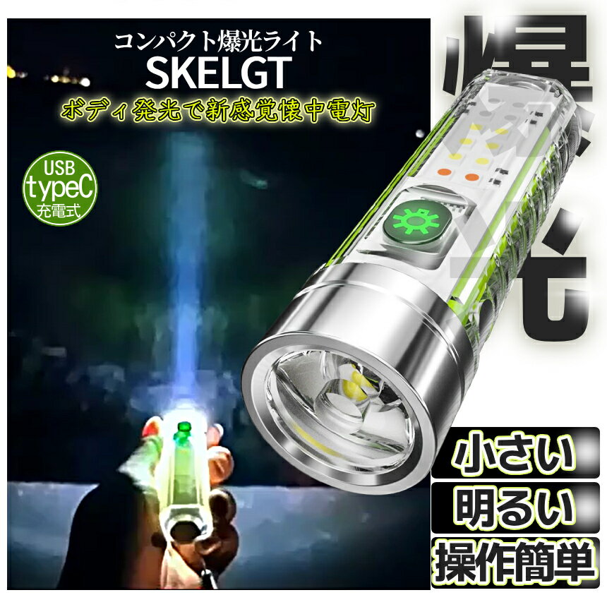 商品名 : 懐中電灯 充電式 ポケット ライト スケルトン ハンディライト 爆光 照明 作業灯 LED照明 ミニサイズ 多mode搭載 散歩 DIY 暗闇 LED COB typec SKELGT 送料無料
