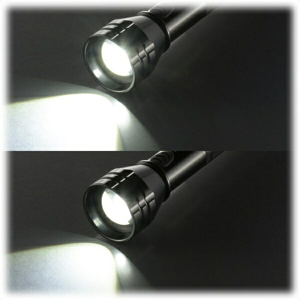 【 特 長 】 ● スライドフォーカス機能付き ● 調光機能2モード(LOW/HIGH) ● 保護等級はIPX6(耐水形) ● 1350ルーメン、10400カンデラの明るさ ● 電池残量インジケーター付き ● 携帯ストラップ付 【 仕 様 】 ■ 電源:単2形乾電池×3本(別売) ■ 光源:白色系LED1個(LED交換不可) ■ 連続使用時間:※未使用・新品のアルカリ乾電池使用時 ・明るさ10%まで…約4時間/HIGHモード、約50時間/LOWモード ・明るさ5 lmまで…約6.5時間/HIGHモード、約80時間/LOWモード ■ 光束:約1350 lm(ルーメン) ■ 照射距離:約230m ■ 保護等級:IPX6(耐水形:暴噴流に対して保護する。あらゆる方向からのノズルによる強力なジェット噴流水によっても有害な影響を及ぼしてはならない)※JIS C 0920:2003による ■ 質量:約315g(電池別) ■ 外形寸法:(約)直径51.4×長さ257mm ■ 付属品:ストラップ