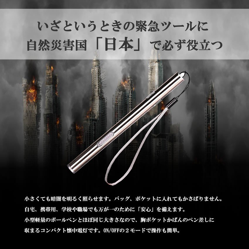 商品名 : ★ポイント5倍 マラソンセール★ペンライト led 懐中電灯 USB充電式 ハンディライト USBケーブル付属 小型 災害 緊急 ツール キャンプ アウトドア 釣り ペンライト キャンプ 防災 夜間散歩 緊急イベント適用 送料無料
