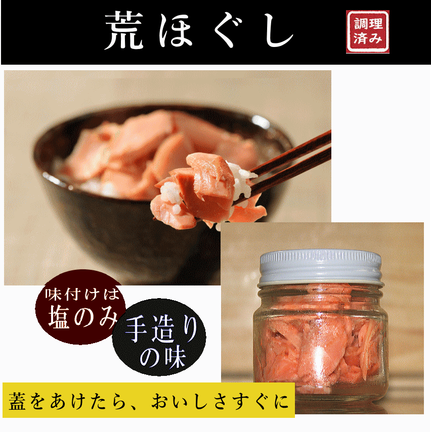 商品名 : 本造り鱒 荒ほぐしフレーク 80グラム...サーモン 甘塩 新潟 鮭 ほぐし 鮭茶漬け 鮭瓶詰め 冷凍 鮭 高級 魚 ギフト 魚 総菜 母の日 母の日ギフト