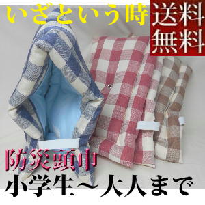 商品名 : 【レターパック】◆小学生用〜大人用まで防災頭巾(大) (カントリーチェック織物)【撥水加工】【日本製】防災ずきん、小学校高学年、防災ズキンかわいい、キッズ、国産洗える、中学生、子供用 、ふわふわ綿、本体