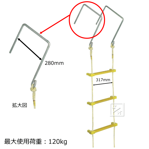 商品名 : 八ツ矢工業 12030 ヤツヤ式縄ばしご (大カギ付き) 5m 縄はしご ~R~