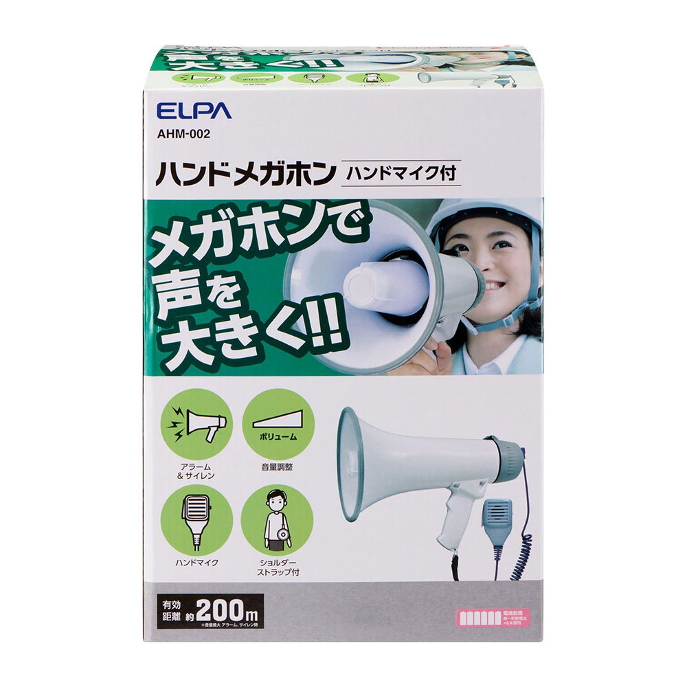商品名 : セキュリティ 安全 防災用品 メガホン マイク付ハンドメガホン_AHM-002_ELPA(エルパ・朝日電器)