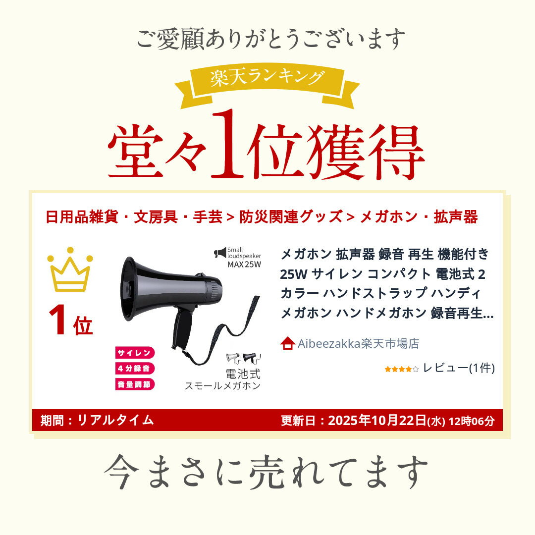 商品名 : ★期間限定!ポイント5倍★「ランキング受賞!」 メガホン 拡声器 録音 再生 機能付き 25W サイレン コンパクト 電池式 2カラー ハンドストラップ ハンディメガホン ハンドメガホン 録音再生機能 電子音サイレン 運動会 パーティー イ