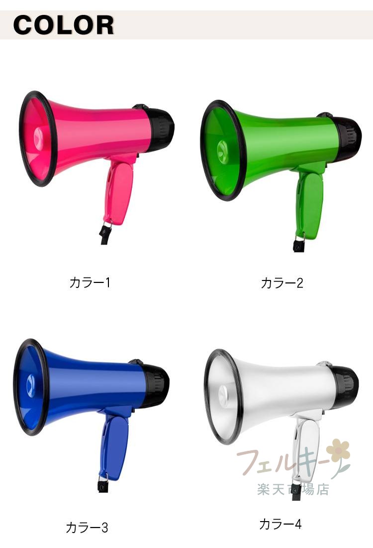 ITEM INFORMATION■ 機能拡声+サイレン+録音(240秒)+栓抜き機能付き+60%折り畳み角度調整可■ 出力・音量25W出力、最大500mまで届く大音量設計■ 主な用途災害時の防災・避難誘導、運動会や部活動の指示、デモ・イベント・催し物の宣伝活動、工事現場・倉庫での作業指示■ カラー全13色展開(シンプルカラーから鮮やかな色まで)■ 電源単2形電池4本(別途購入必要)■ 素材ABS そのほか■ 備考サイズには若干の誤差(1cm〜3cm)が生じる場合があります。製造ロットにより形状や色味に違いが生じる場合があります。パッケージ仕様は予告なく変更される場合があります。商品の色は実物と異なる場合があります。生地によっては初期段階で匂いを感じる場合がありますが、使用や陰干しで軽減します。生産時期による誤差が生じる場合があります。在庫状況により欠品となる場合があります。商品に不具合があった場合はお問い合わせください。