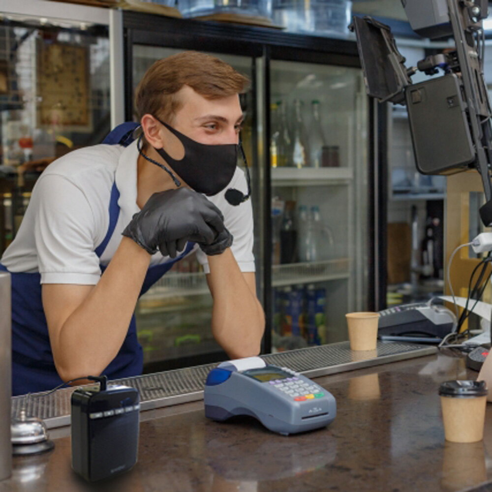 レジや窓口などでのご案内に最適。 お手軽に設置または身に付けて移動できる小型拡声器がお役に立ちます。 お店や病院、公共施設、映画館やガソリンスタンドなど・・・ 大声を出さずとも多くのお客様へご案内をすることが可能です。 ●ストラップやベルトクリップで体に装着できるため身動きが自由、ハンズフリーで使用できます。 ●ヘッドマイクからの音声を録音することができます。 ●FMラジオ(FM補完放送含む)を聞くことができます。 ●マイクロSDカードまたはUSBメモリに保存された、MP3音楽ファイルを再生できます。 ●外部機器(モノラル)からの音声入力に対応しています。(ケーブルは付属していません) FMラジオ、マイクロSDカード、USBメモリ、外部機器からの音声や音楽再生中でも、マイク音声の拡声器として使用できます。(マイク音声個別の音量調整はできません)。 定格 スピーカー部 最大出力 10W 周波数特性 200Hz 〜 18,000Hz スピーカー 密閉式フルレンジスピーカー スピーカー インピーダンス 2Ω マイク入力 3.5mm 外部入力 3.5mm (AUX) 対応メディア マイクロSDカード、USBメモリー(最大32GB) mp3形式 FMラジオ周波数 76.1 〜 94.9MHz 電源 内蔵リチウムイオン電池 1800mAh 充電時間 約 3〜4時間 連続使用時間 マイク:10〜12時間、音楽:6〜8時間(音量約50%時) 使用温度範囲 -10 〜 +50℃ サイズ 84(W)×104(H)×40(D)mm (取付ステー含まず) 重量 約 275g 付属品 本体x1、ヘッドマイクx1、延長ケーブルx1、ストラップx1、 ベルトクリップx1、ACアダプタ及び接続ケーブル×1 取扱説明書(保証書付)×1 マイク部 形式 単一指向性マイク 周波数特性 30 〜 23,000Hz マイク感度 -41dB(+-1dB) (0dB=1V/BV) 電圧 1.5V プラグ形状 3.5mm ケーブル長 . 1.0m インピーダンス 2.2K Ω以下 重量 約 33g