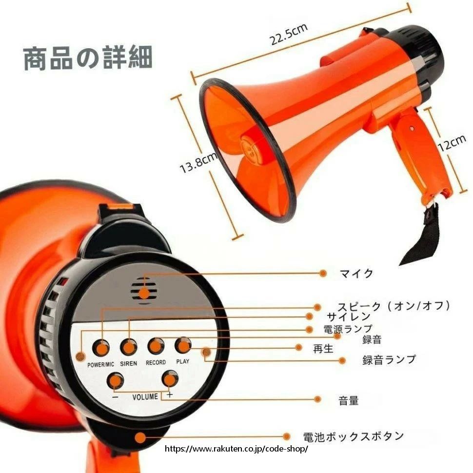 商品名 : メガホン 拡声器 屋外用 30W ハンドヘルド調整 スピーカー 音量調整機能付き 800フィートの音響範囲 サイレン内蔵 大音量 スピーカー 携帯型 災害対策グッズ 拡声器 宣伝活動 運動会