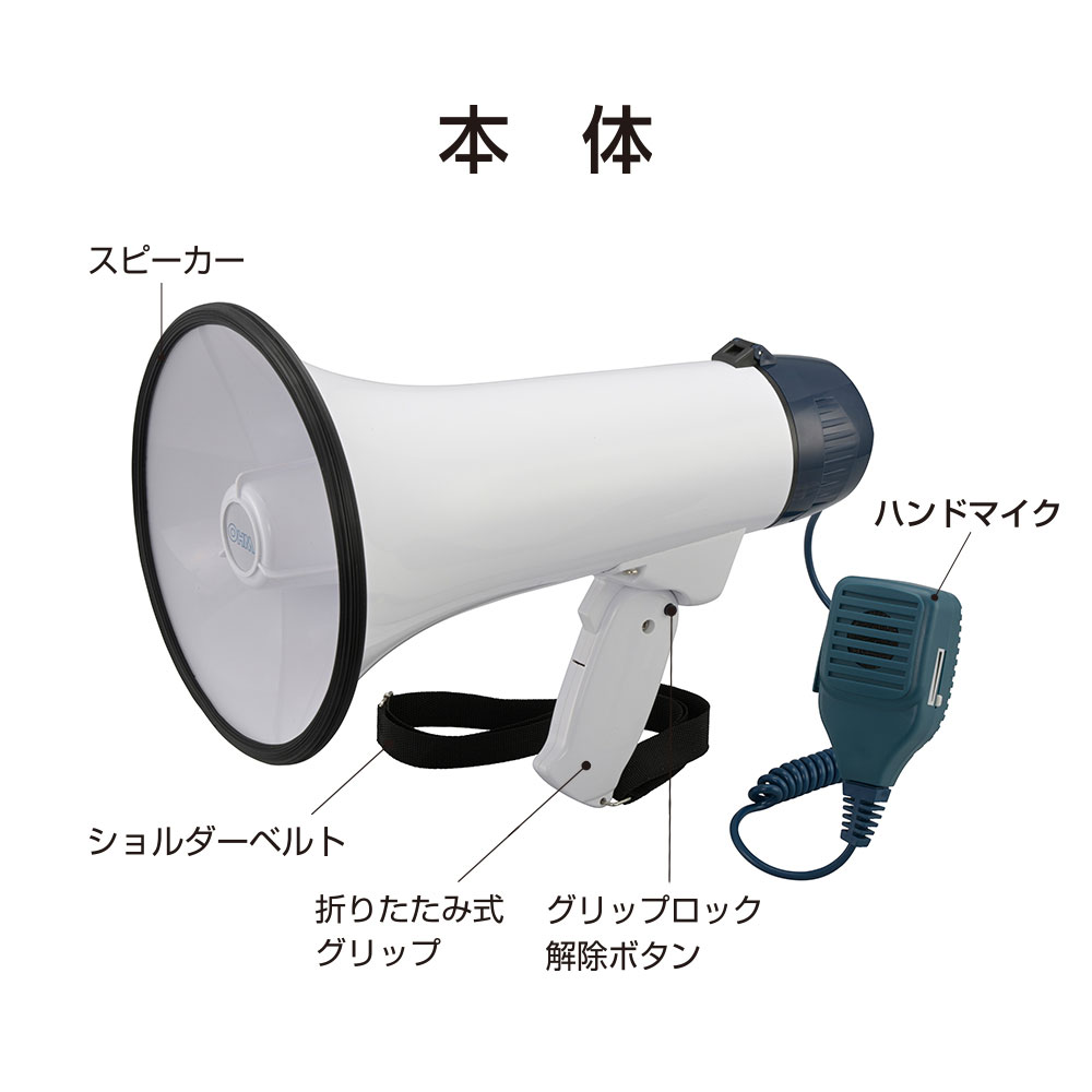 商品名 : ハンドマイク付きハンディメガホン XB-11SF-B 折りたたみ式グリップ、ショルダーベルト付 (06-5416)