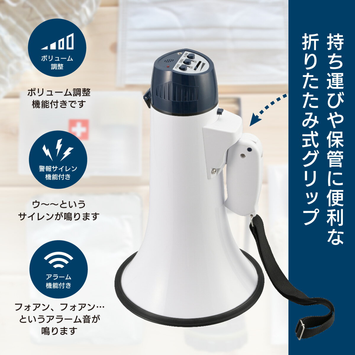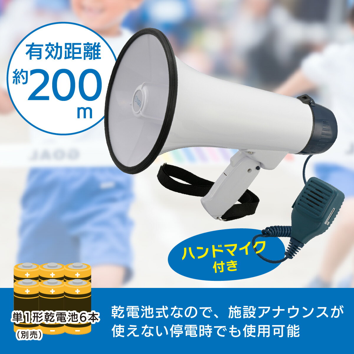 商品名 : メガホン 拡声器 ハンディメガホン ハンドマイク付き ボリューム調整 警報 サイレン アラーム 大音量 有効距離 200m 持続時間 12時間 電池使用 単1形6本 イベント スポーツ アウトドア 学校 クラブ活動 運動会 防災 避難 地震 台風|オーム電機 XB-11SF-B 06-5416