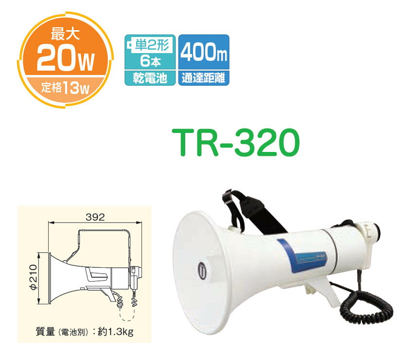 商品名 : ユニペックス TR-320 UNI-PEX 防災用品 メガホン 可搬性に優れたショルダー型 最大20W 定格13W 乾電池式